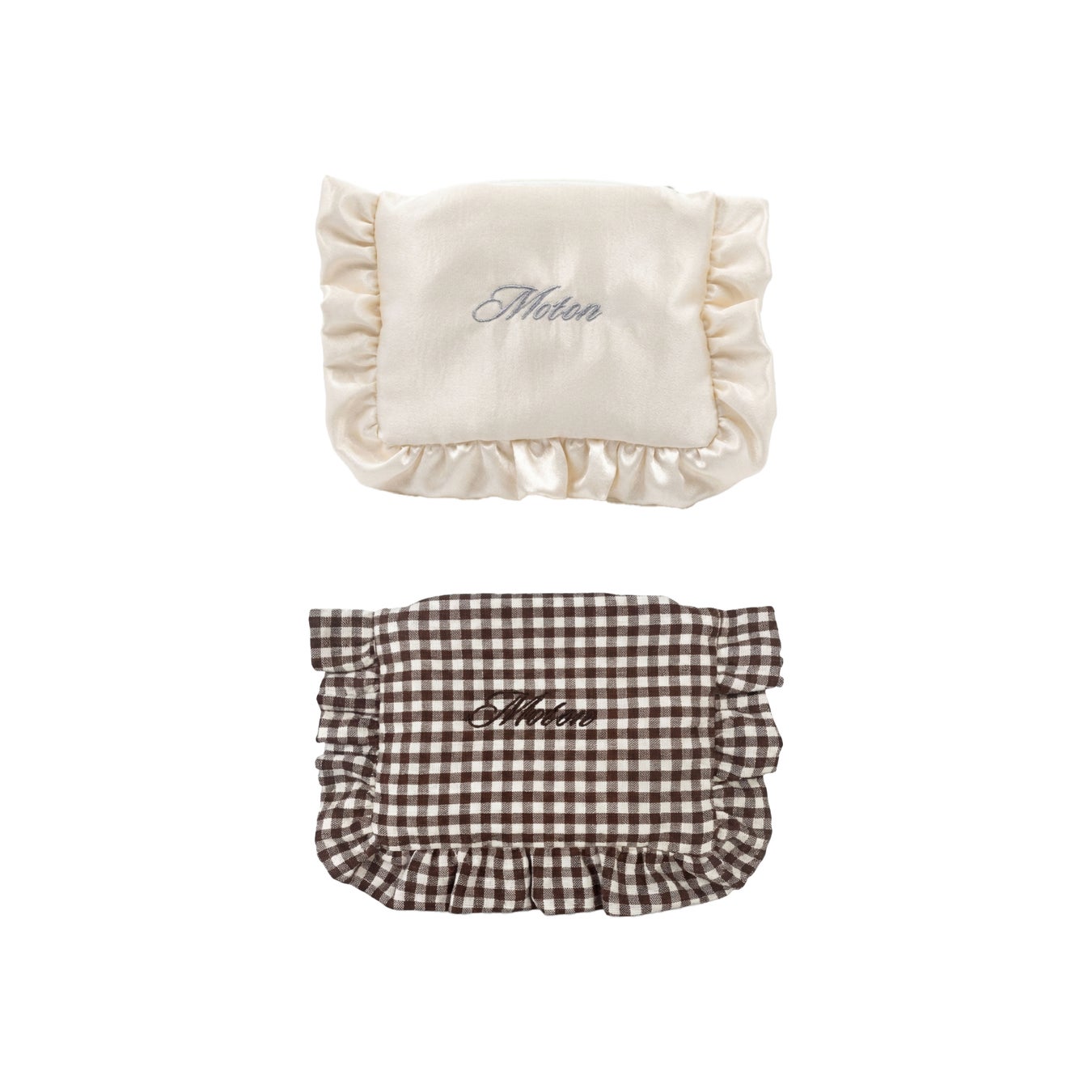 『刺繍フリルポーチ(サテン / ギンガム)』