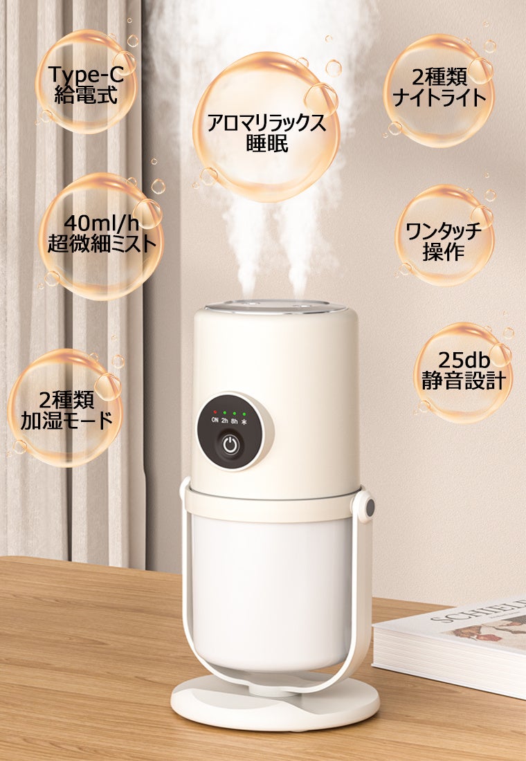 加湿器は、きめ細かく柔らかなミストを発生させるため、デスクや家具を濡らすことなく、オフィスやリビング、寝室など、あらゆる空間で安心してお使いいただけます。