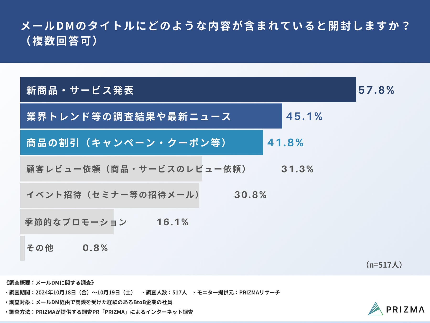 メールDMで開封したくなるタイトルは「新商品・サービス発表」「業界トレンド等の調査結果や最新ニュース」「商品の割引」