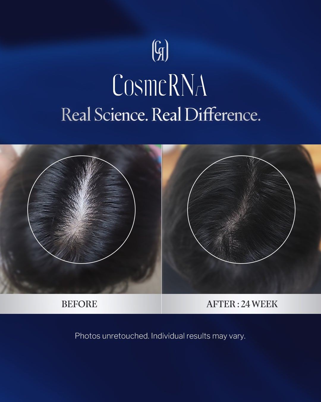 CosmeRNAは、RNA干渉(siRNA)技術に基づき、毛包のアンドロゲン受容体(AR)に着目したスカルプケアです。