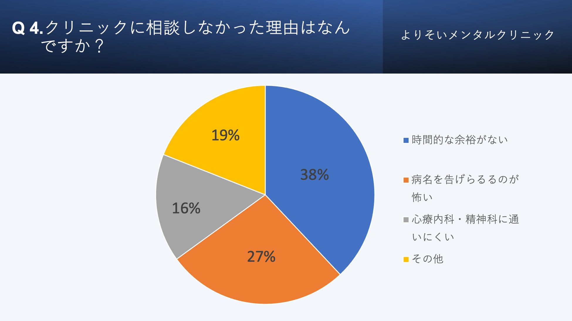 その結果、こころの不調をクリニックに相談した方は2割程度であることが分かりました。