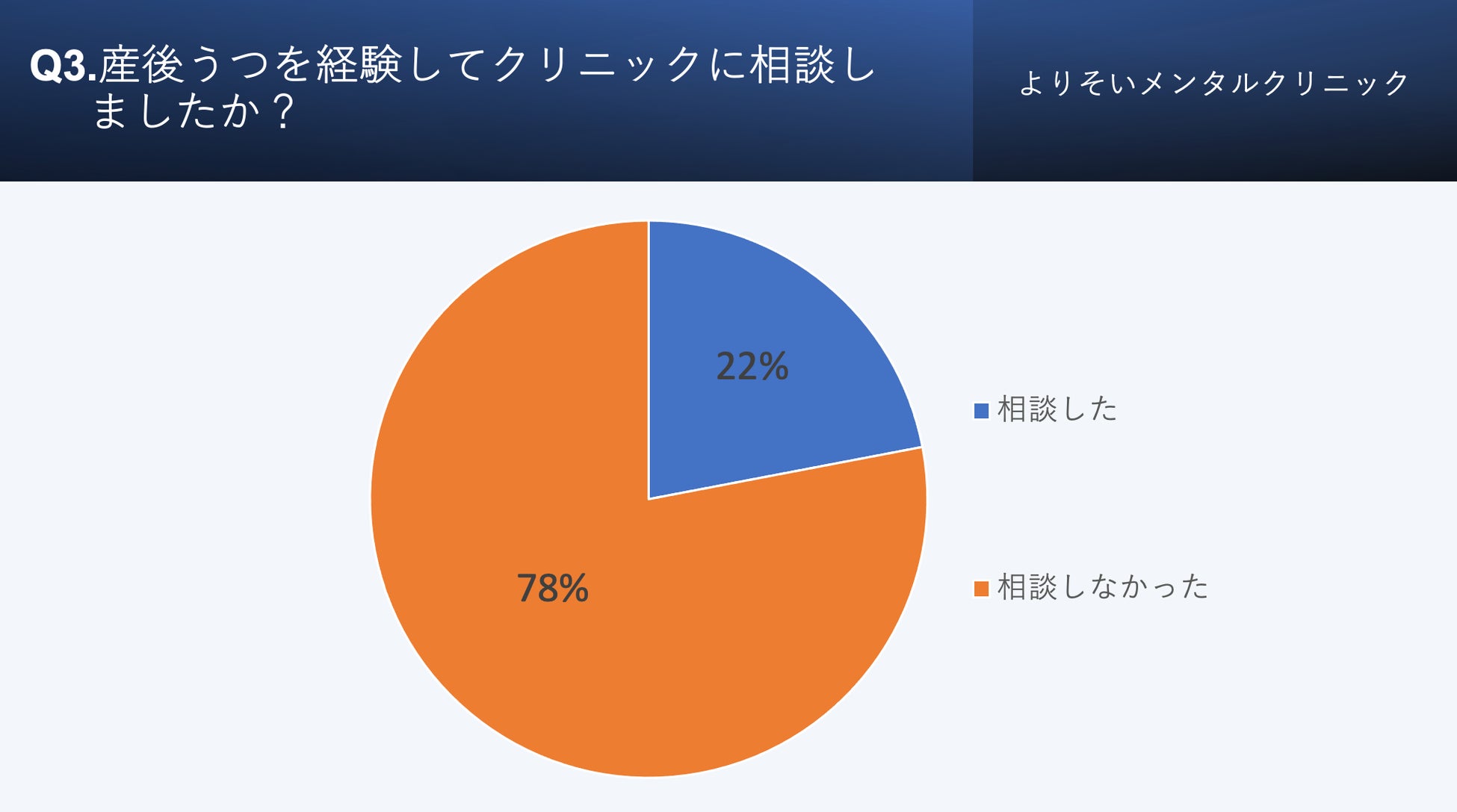 また、産後のうつ状態を経験した方のうち実際にこころの不調をクリニックに相談した方は約2割と少ないことが明らかとなりました。