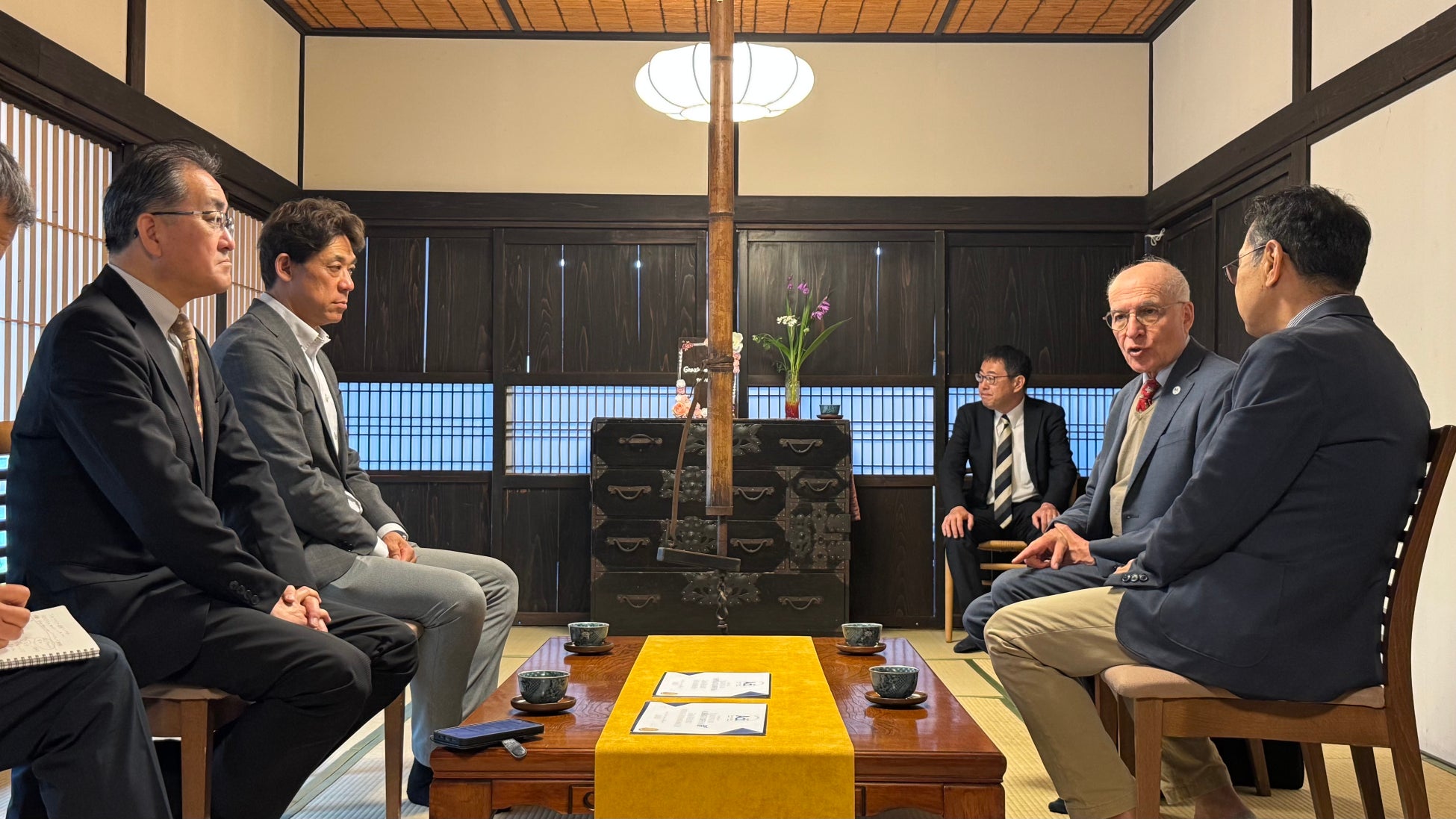 当日は、ガイアから社長・相澤国弘、専務取締役・宇田川敬之、常務取締役・永倉弘子、そして宮城県議会議員・横山隆光氏、日本ファームステイ協会代表理事・上山康博氏にもご同席いただき、「蔵王発・世界へ広がる共生型観光の可能性」について意見交換を行いました。