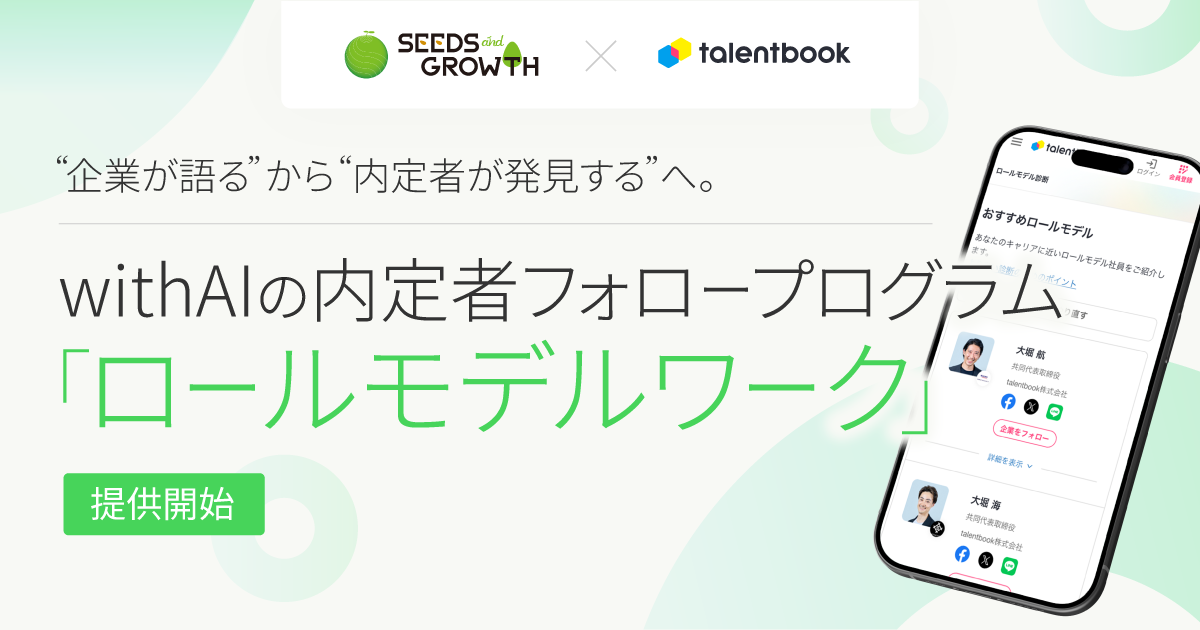 「企業が語る」から「内定者が発見する」へ。シーズアンドグロース×talentbook、with AIの内定者フォロープログラム「ロールモデルワーク」をリリース