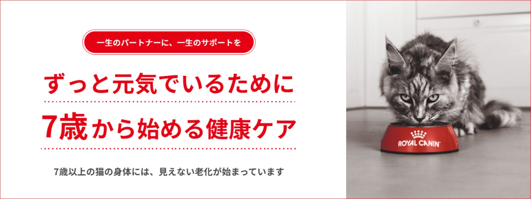 栄養学に基づいて犬と猫の健康を実現する企業(Health Through Nutrition Company)として、プレミアムペットフード および食事療法食を展開するロイヤルカナン ジャポン(本社:東京都港区、社長:日下部 真一、以下、ロイヤルカナン)は、2025年10月1日(水)~11月30日(日)の期間、中・高齢期を迎える7歳以上の犬・猫を対象に「ロイヤルカナン ヘルシーエイジングキャンペーン」を実施します。本キャンペーンでは、特設サイトを開設し、7歳以上の猫のための栄養や健康ケアに役立つ様々なコンテンツを提供します。また、本キャンペーンのもと、当社が毎年行っている7歳以上の犬・猫の健康診断受診を応援する「7歳からの健康チェックキャンペーン2025」も同時開催します。