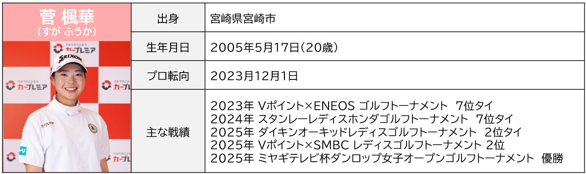 自動車に関する複合的なサービスを提供するオートモビリティ企業のプレミアグループ株式会社(本社:東京都港区、代表取締役社長:柴田洋一、以下「当社」)は、当社がスポンサー契約を締結しているプロゴルファー菅楓華選手(以下「菅選手」)が、2025年9月28日(日)、JLPGAツアー2025シーズン第27戦「第52回ミヤギテレビ杯ダンロップ女子オープンゴルフトーナメント」(以下「本大会」)において、ツアー初優勝を果たしたことをお知らせいたします。
