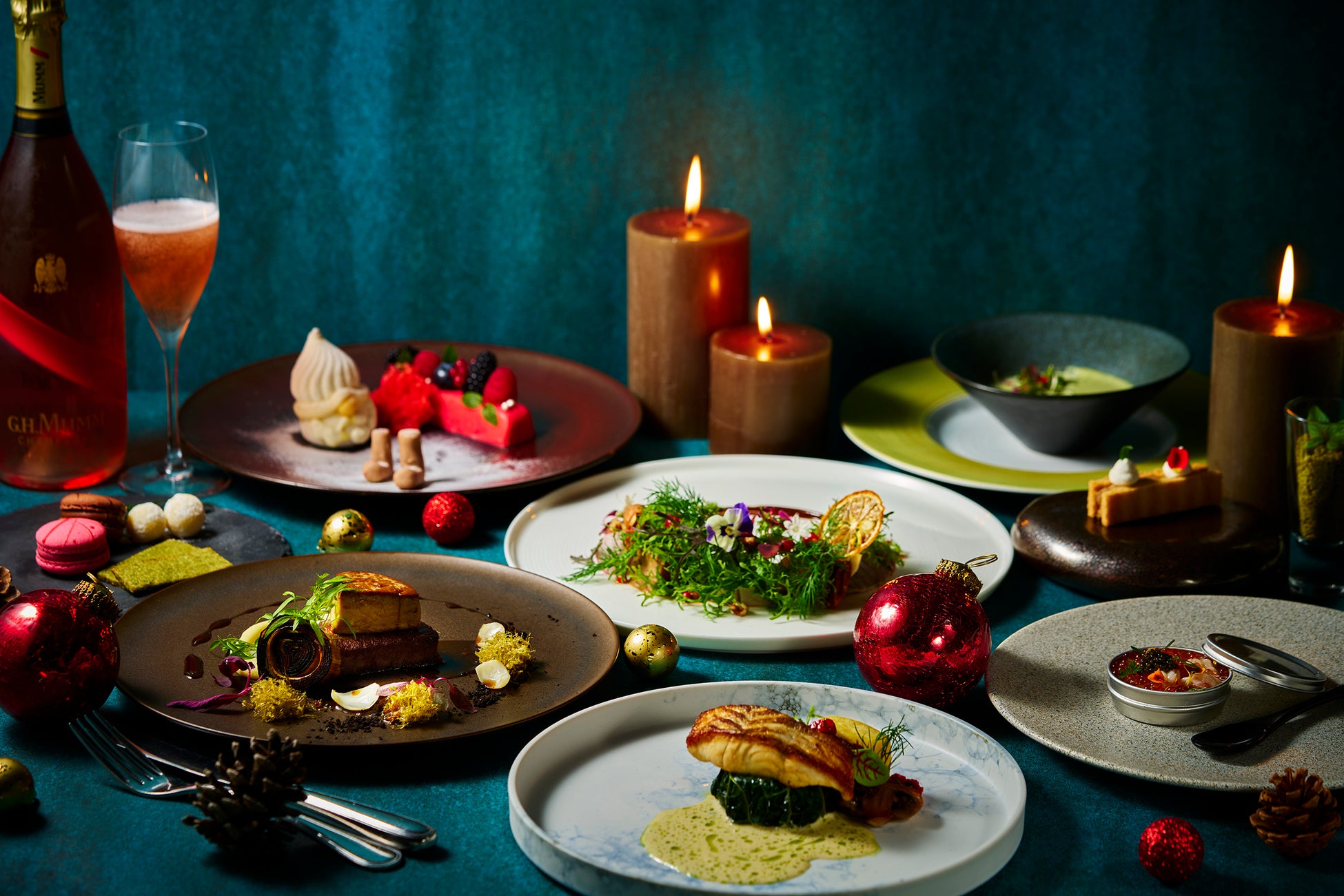 レストラン「ボヌール」のシェフが腕によりをかけてお届けする クリスマス特別ディナー「Xmas Premium Dinner 〜Noel〜」 では、駿河湾の赤海老や、熱海レモンなどの地元食材を活かした料理の数々に加え、クリスマスリースをモチーフにした華やかなお料理も並び、目でも舌でも楽しめる特別なひとときを演出します。