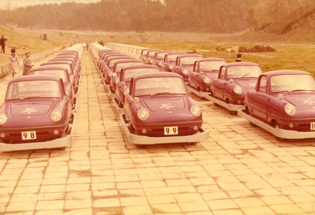 神奈川県横浜市と東京都町田市にまたがる「こどもの国」は、次世代を担うこどもの健全育成のための児童厚生施設として、1965年に開園しました。開園当初のアトラクションのひとつとして、こどもが運転できる本物の自動車「こども自動車」が導入されました。こどもの交通訓練として、指導を受けて「こども自動車の会会員証」を交付されると全長1.6キロのコースを専用の自動車で走ることができました。その自動車が、日産自動車から100台が寄贈された「ダットサン ベビイ」です。