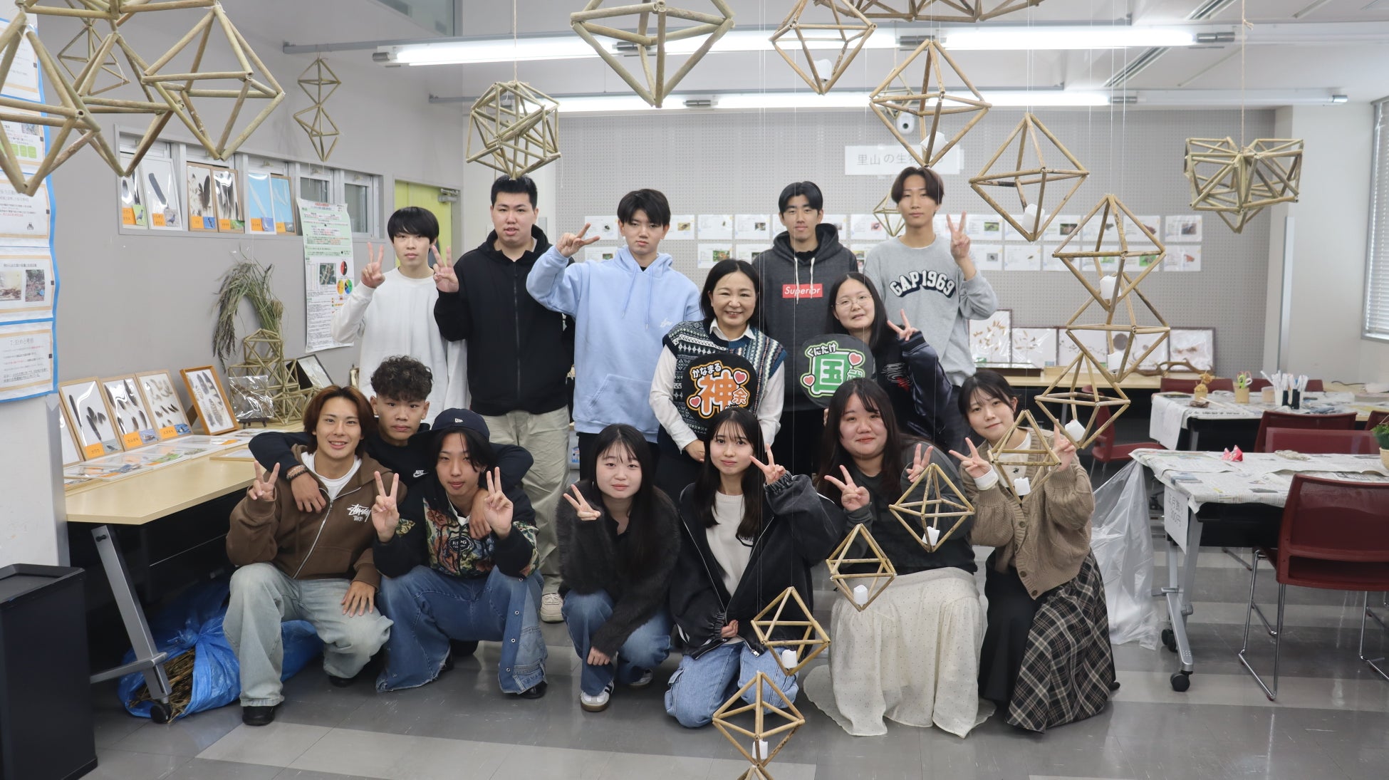 11月に開催した大学祭「JIU Festival」では、地域で収穫した竹や藁を用いたお正月飾りや、フィンランドの伝統的なクリスマス飾り「ヒンメリ」を制作するワークショップを実施。来場者に作り方をレクチャーするなど、竹の活用方法をゼミ内で考え、地域のさまざまな場面で活動を展開してきました。