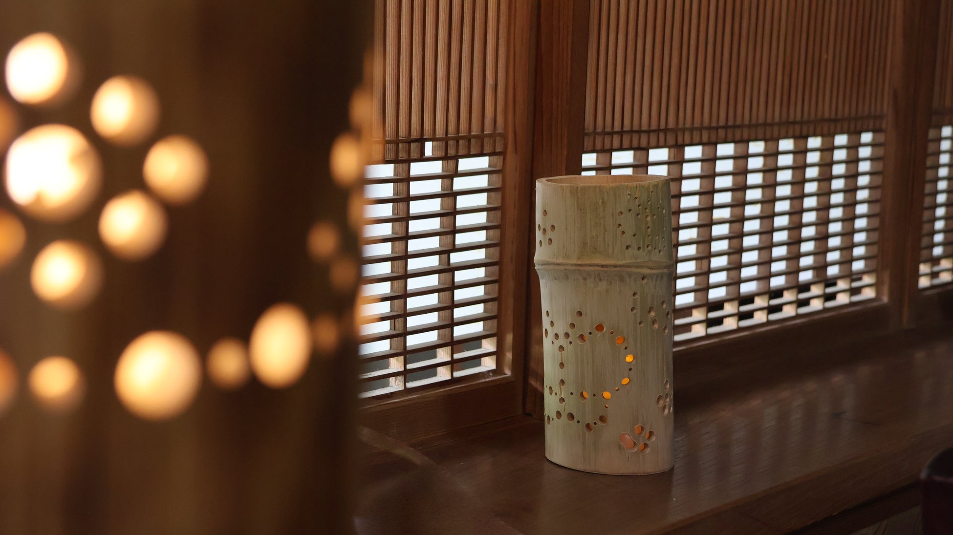 このプロジェクトの一環として、国武ゼミと域学共創プロジェクトのメンバーは、9月にいすみ市で古民家カフェを運営した際、竹を使用したインテリアを自ら制作するなど、実践的な取り組みに挑戦しました。竹に穴を開けて内部から淡い光がこぼれるように作ったライトは、木造の古民家に調和し、来場者からも好評を得ました。