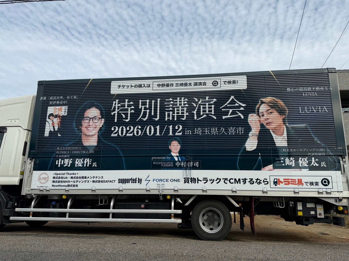 中野優作 / 三崎優太 講演会の特別車両が走行決定!〜貨物トラック広告【トラミル】を利用した新たなプロモーション戦略〜