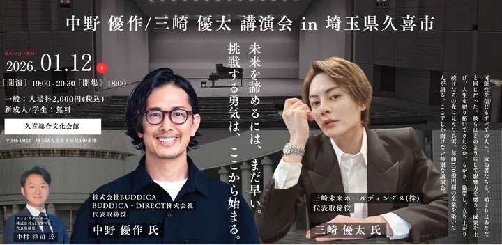 ・イベント名:中野優作 / 三崎優太 講演会 in 埼玉県久喜市