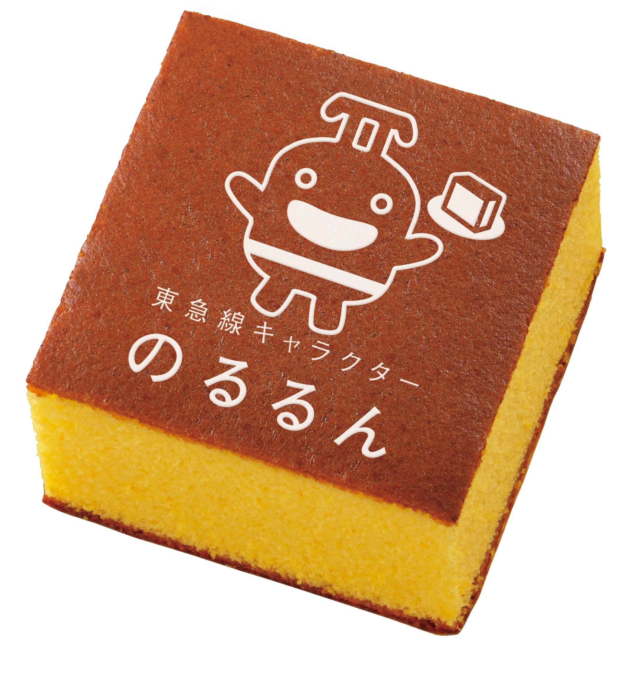 東急線のキャラクター『のるるん』と、伝統の一品『文明堂』のハニーカステラとのコラボ商品。まろやかでしっとりした味わいのカステラ天面に、『のるるん』をデザインしました。