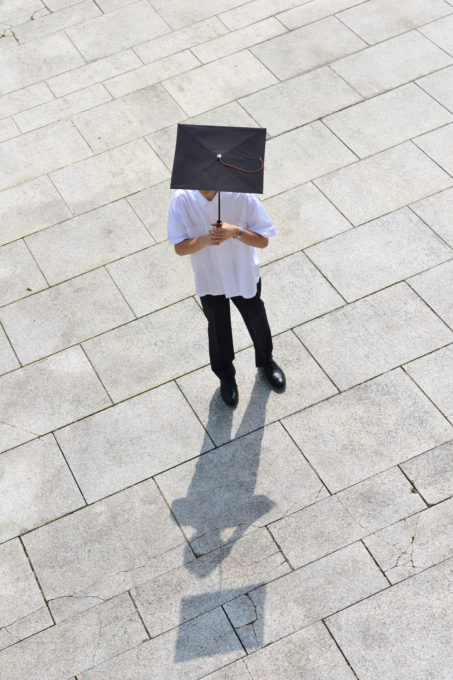 強い日差しのもとで人は無意識に手をかざして、顔まわりに陰をつくろうとします。