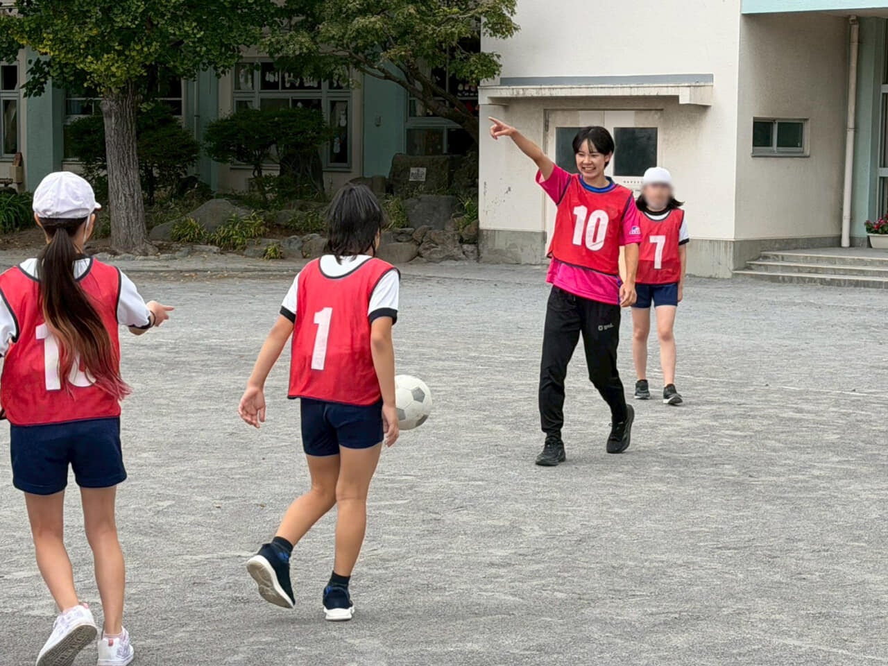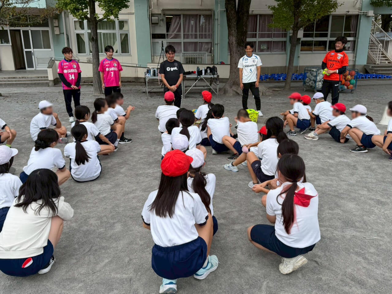 2025年10月28日(火)、江戸川区立大杉第二小学校にて、南葛SCのMF 19 玉城 峻吾選手、GK 37 外山 佳大選手、DF 5 飯田 佑也選手、南葛SC WINGSのMF 34 下山 莉子選手、MF 7 石倉 花純選手が、対象にサッカー教室「翼DREAM(つばさドリーム)」を行いました。