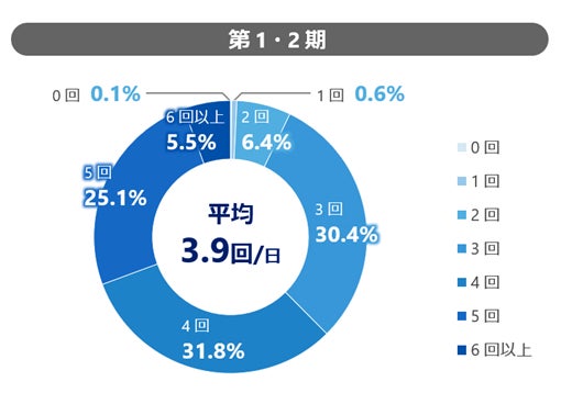 第一期、第二期全体での1日当たりの媒体への接触頻度は平均しておよそ3.9回/日でした。