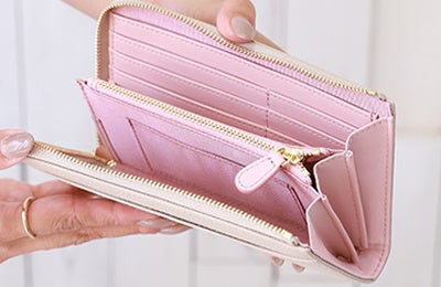 カード最大10枚・お札10枚・小銭20枚・通帳まで入る収納力。