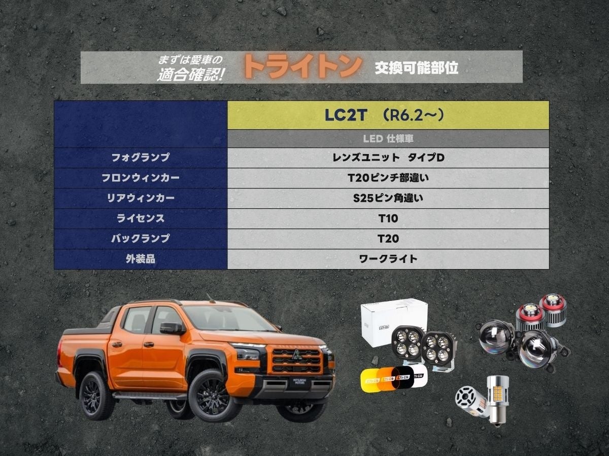 本特集ページでは、トライトンのフォグランプ、ウィンカー、バックランプ、ライセンスランプ(ナンバー灯)など、各箇所に適合するfcl.のLED製品ラインナップを一覧でご確認いただけます。