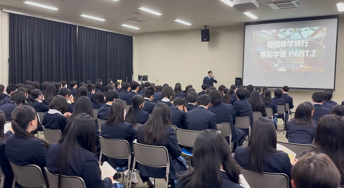 本講演では、韓国の最新トレンドや日韓文化の違いをテーマに、実践的な韓国語フレーズの発音指導を行いました。また、生徒が現地で円滑にコミュニケーションを取れるよう、文化理解と語学を融合させた講演を行いました。