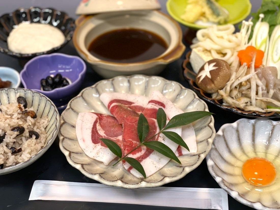 1日目昼食:三大ブランド牛の食べ比べ または ボタン鍋御膳から選べます