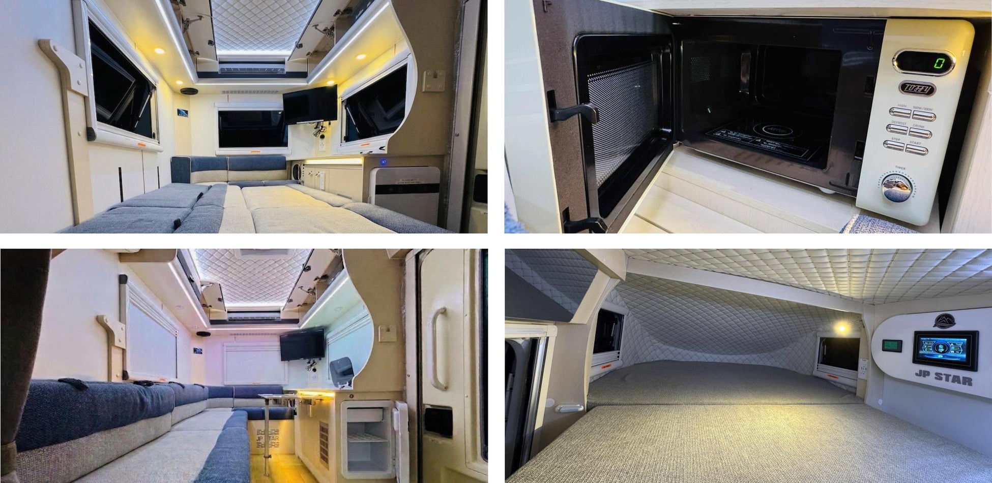 「ハッピーワンプレミアム(https://japan-crc.com/tokyo/detail?car_id=1329)」は、コンパクトサイズでありながら、最大4名の乗車・就寝が可能。キャンピングカーに馴染みのない方でも安心して運転でき、女子旅や少人数ファミリー、カップルでの利用に最適です。現在、訪日外国人旅行者に一番人気の車となっています。