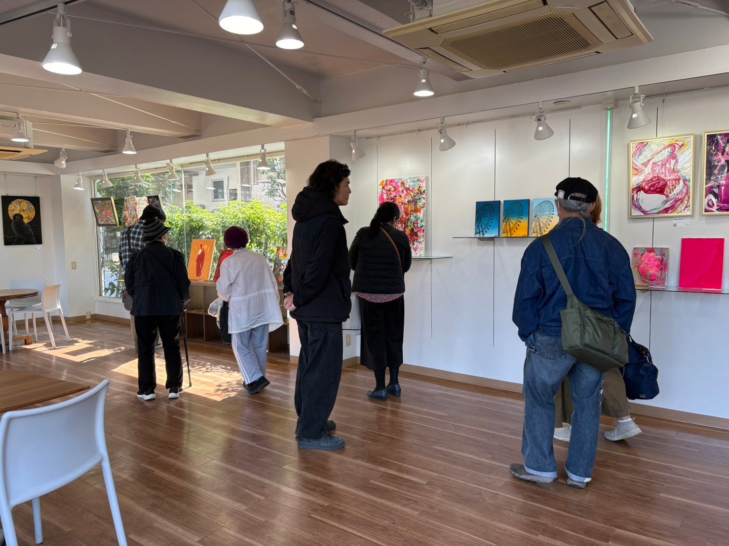 平日の日中という限られた開催時間であったにもかかわらず、オープン直後から途切れることなくお客様にお越しいただき、2日間で合計150名以上の方にご来場いただきました。連日の賑わいを見せ、会場は若手アーティストたちの熱気と、来場者の皆様の笑顔に包まれました。