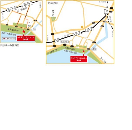 行き方:JR横須賀線鎌倉駅徒歩15分/江ノ島電鉄和田塚駅徒歩約8分/由比ケ浜駅徒歩約9分
