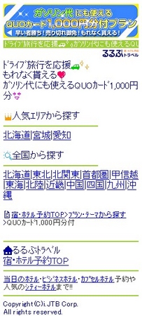原油高に伴うガソリン価格の高騰による旅行消費動向の低迷対抗すべく、1,000円分のQUOカードを付けたプランを特集を組んで展開します。QUOカードはガソリン代以外にも使用できますが、主にガソリン代使用をターゲットにドライブ旅行の利用促進を見込みます。