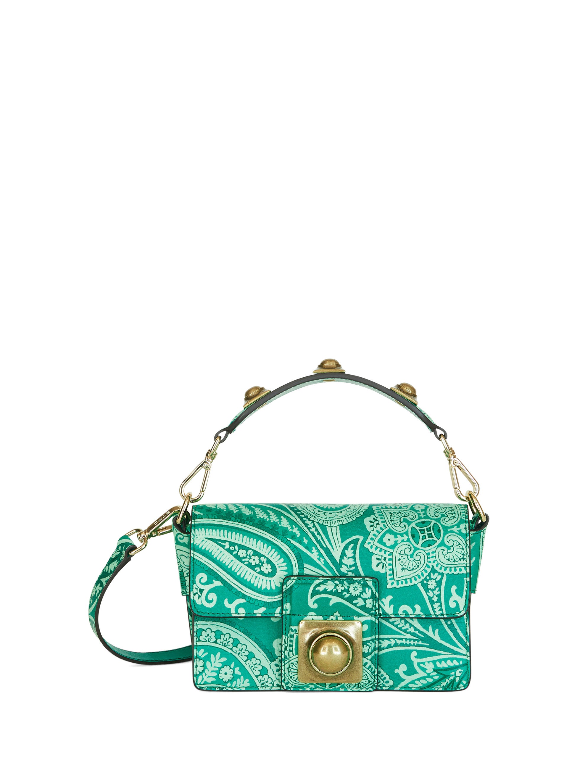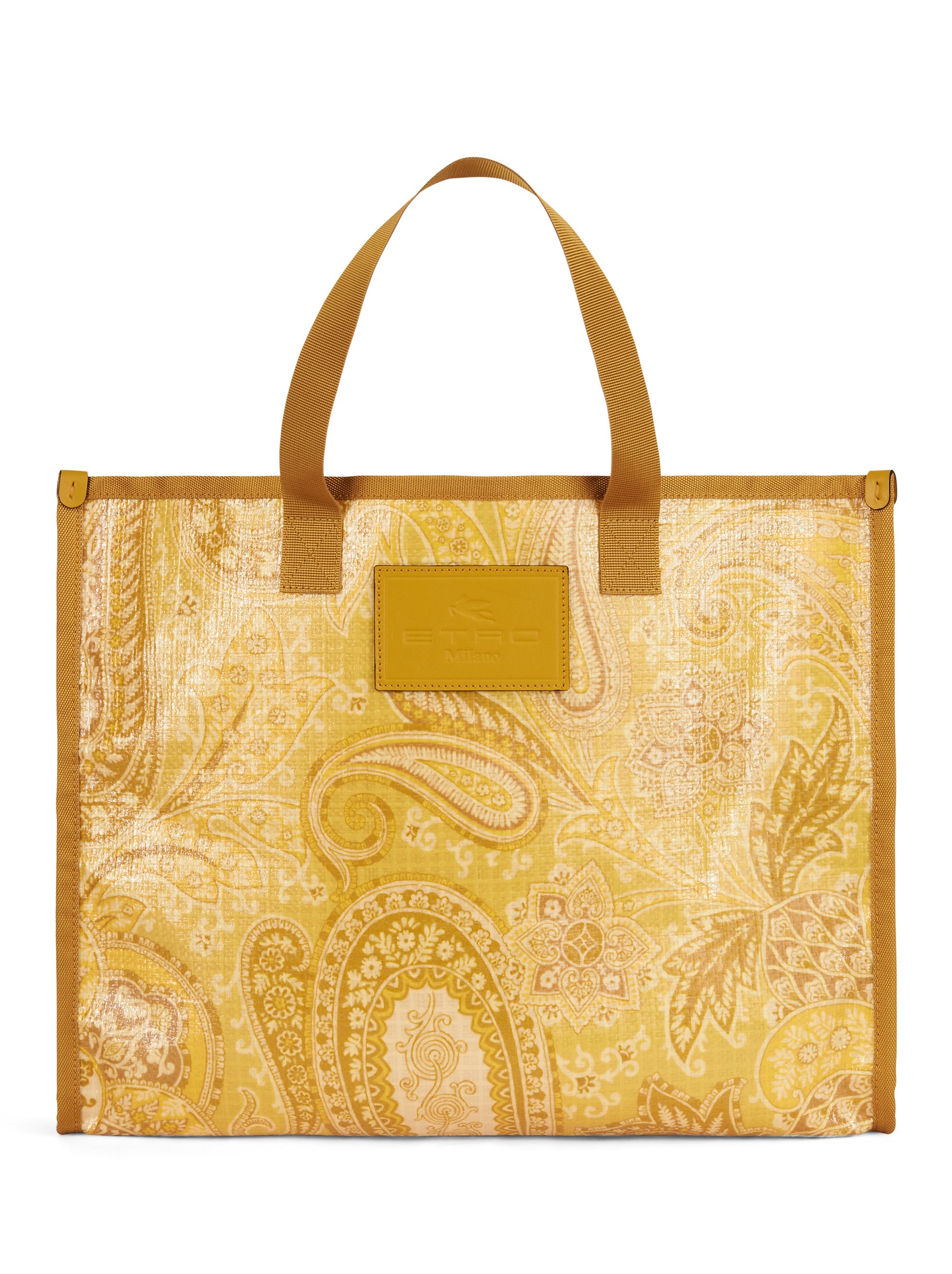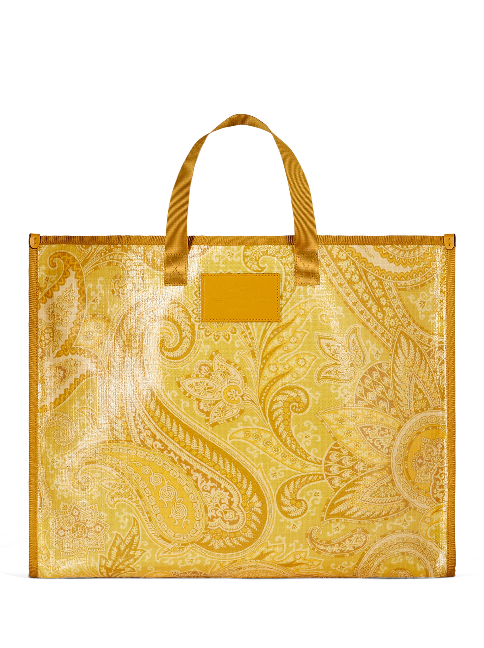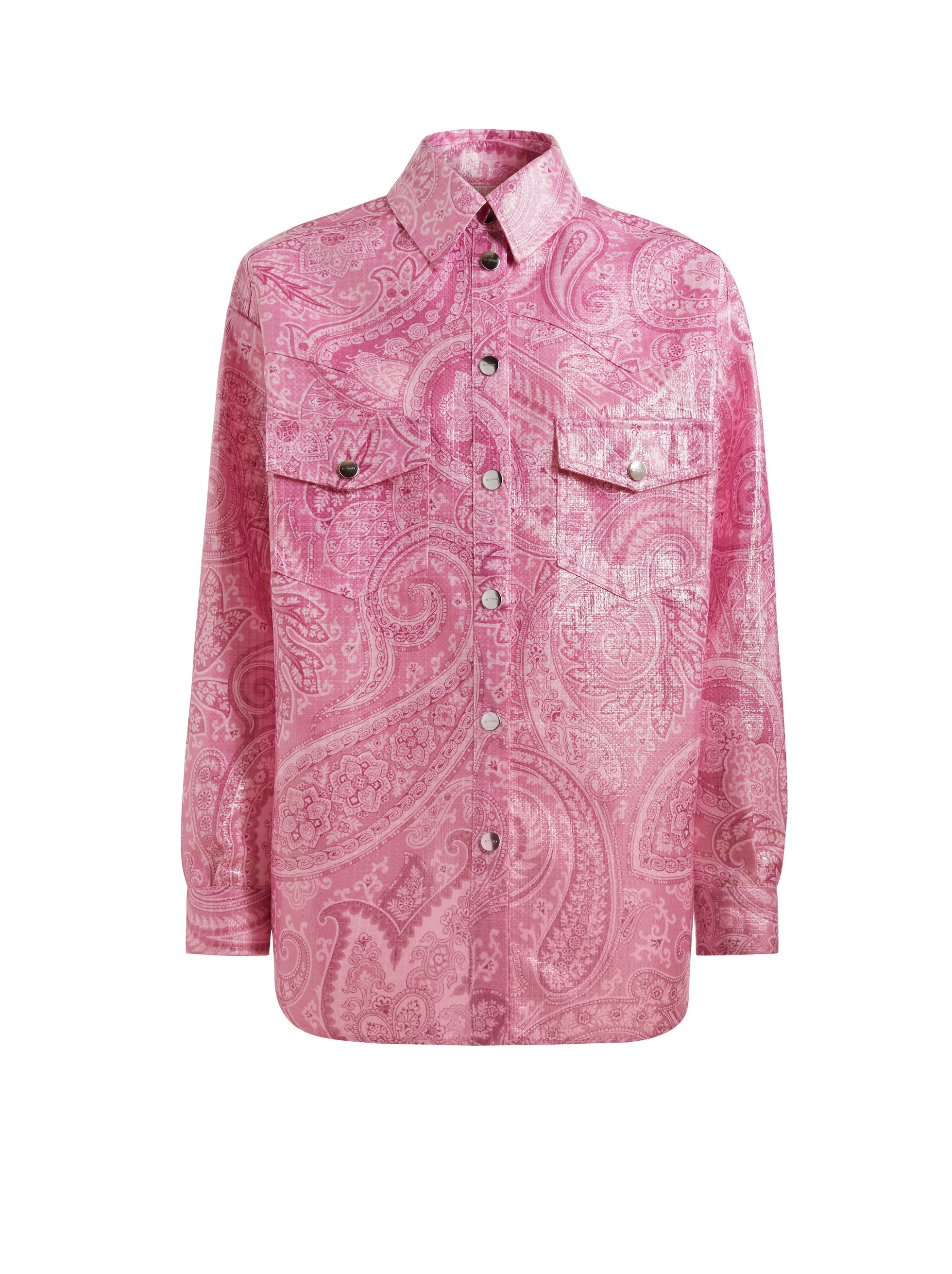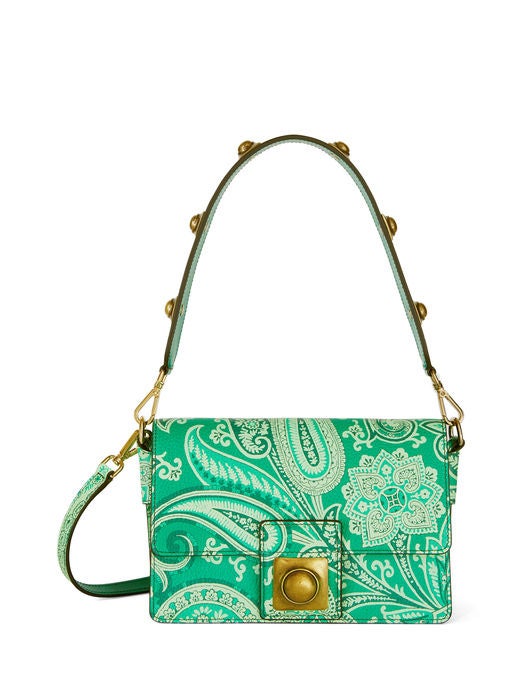 エトロのモノクロームともいうべきトーン・オン・トーンのペイズリー柄は、ブランドの新たなエンブレムとしてタトゥーのように広がり、艶やかなコーティングナイロン素材のシャツ、グローブトロッターバッグやバケットハットをはじめ、ニット、デニムパンツ、ショーツ、Tシャツなどのウェア、アイコニックなバッグのクラウン・ミー・フラップ、モバイルホルダーやカードホルダー、ヘッドバンドやペイズリーナなどのアクセサリーまで、幅広いラインナップを取り揃えています。