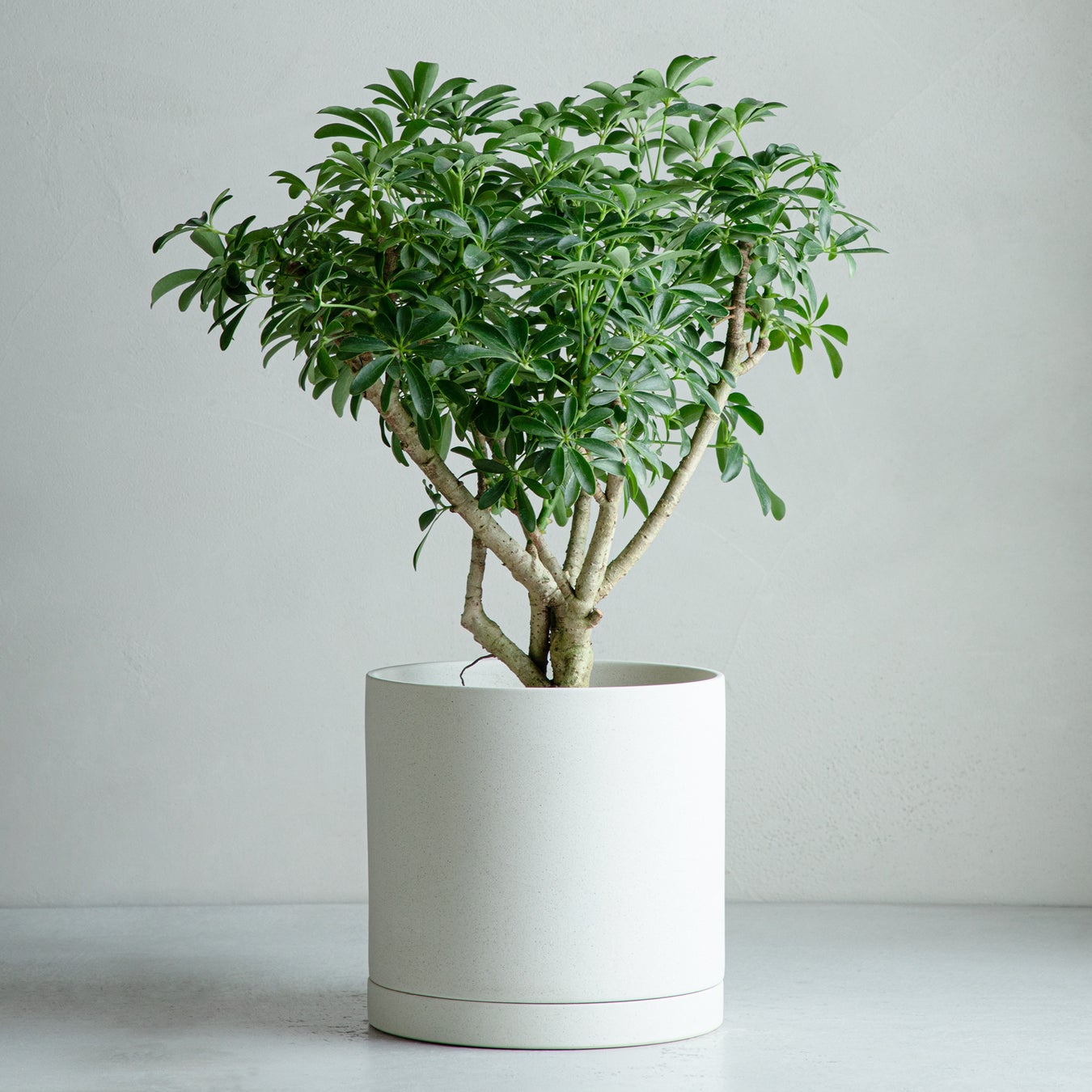 シェフレラの小型種で、葉も小さくチャーミングな観葉植物。光沢と丸みのある葉が美しく、コンパクトで成長し過ぎず、省スペースで育てられます。耐陰性もありますが基本的には日光を好むため、直射日光の当たらない風通しの良い場所で管理し、土が乾いたら水を与えましょう。寒さには弱く、冬の間は15℃以上を保てる環境で育てることで冬越しができます。