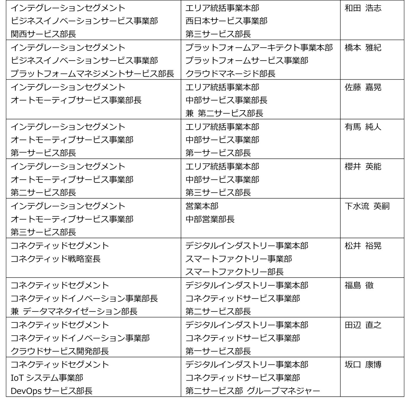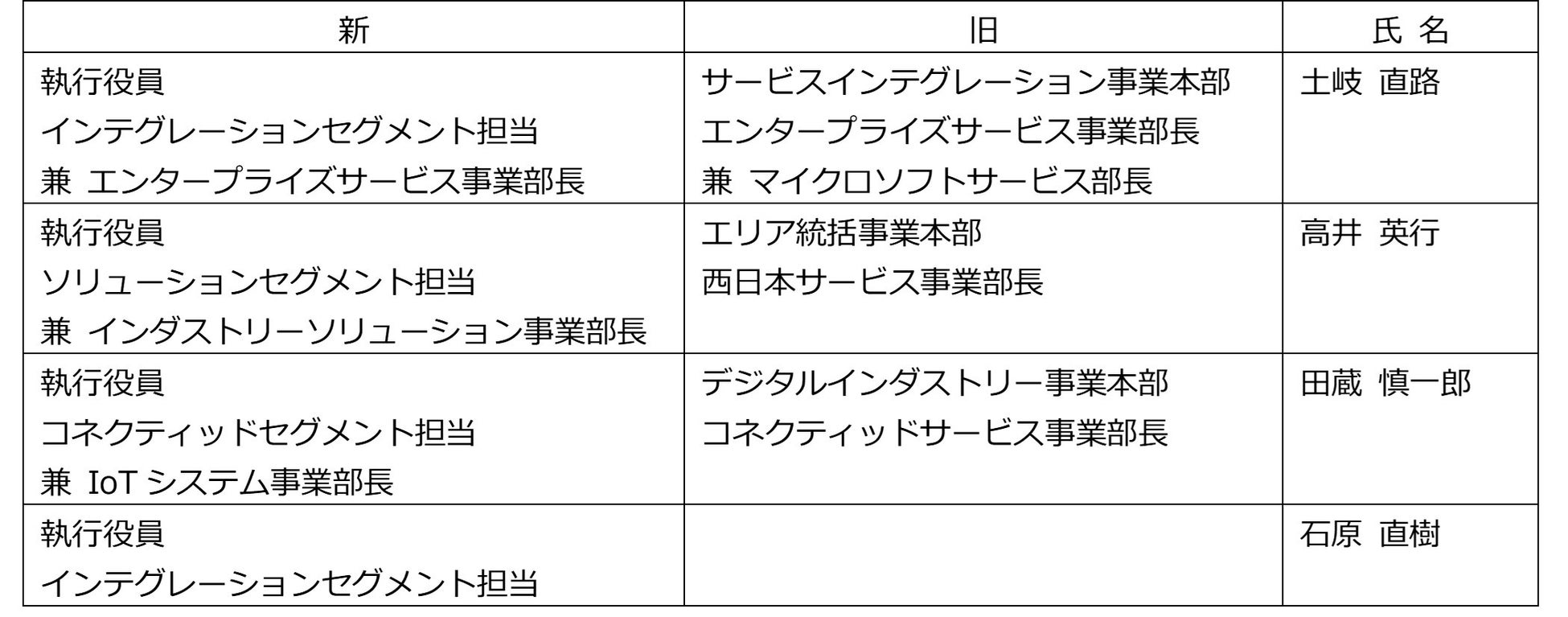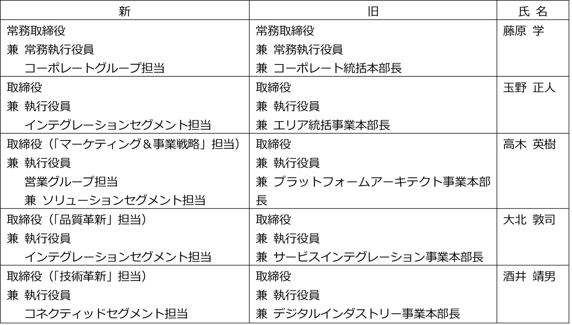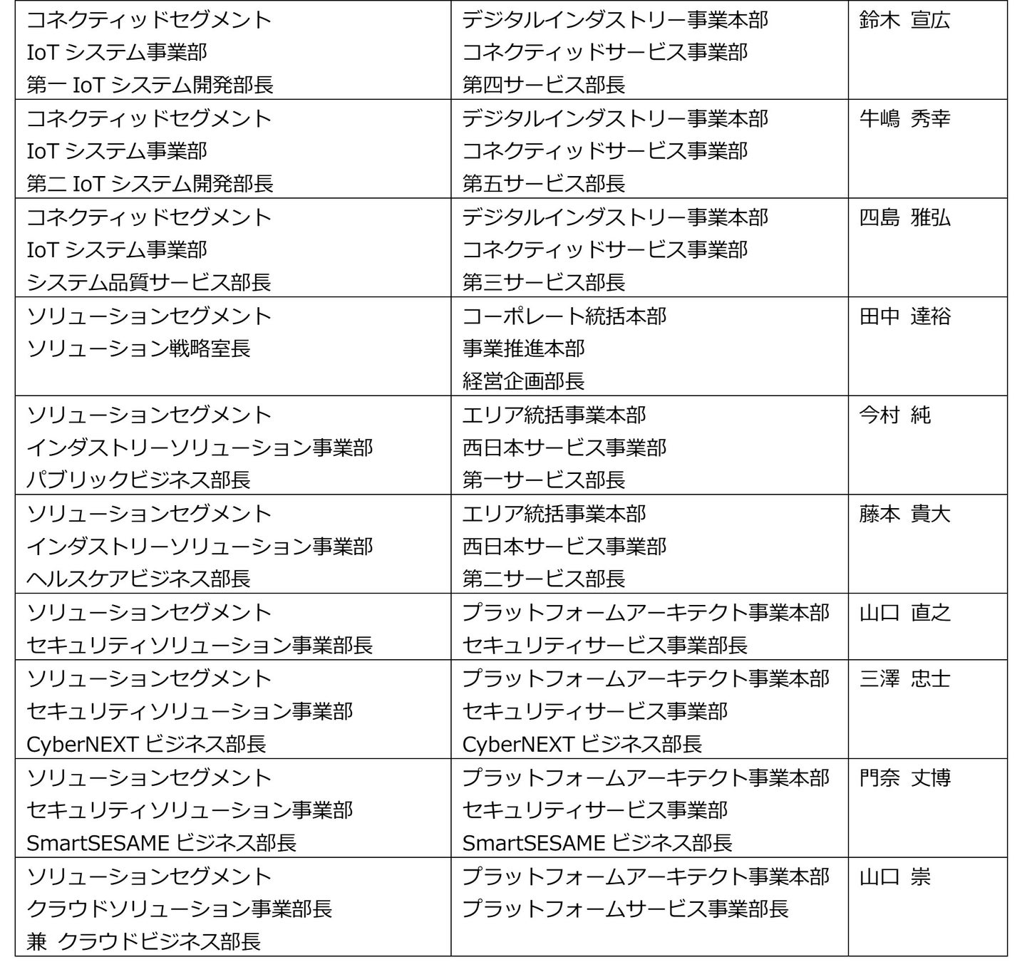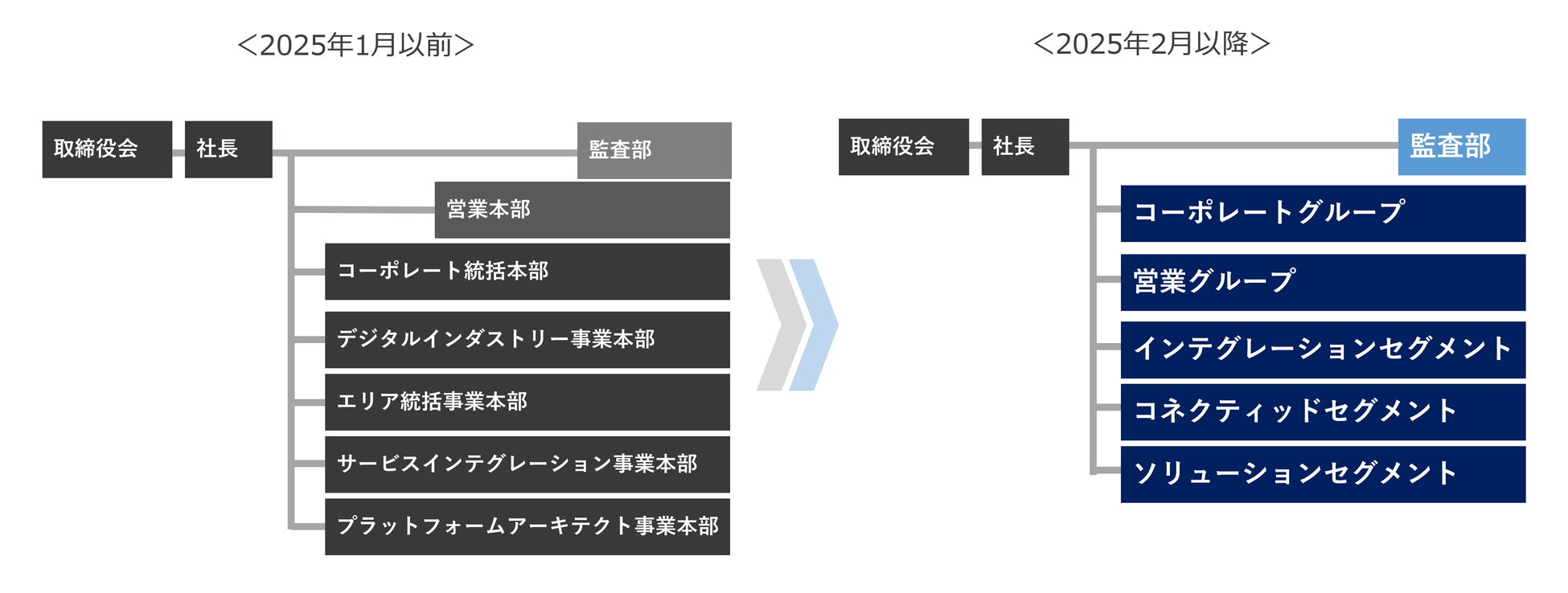 デジタルインダストリー事業本部、エリア統括事業本部、サービスインテグレーション事業本部、プラットフォームアーキテクト事業本部を再編し、「インテグレーションセグメント」、「コネクティッドセグメント」、「ソリューションセグメント」とする。