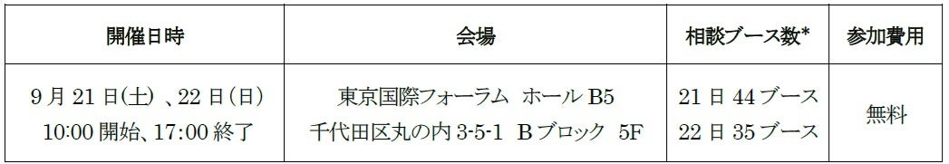 (※)青森、宮城、山形、埼玉、福井、京都、兵庫、岡山、広島の9府県は21日のみ相談ブースを出展
