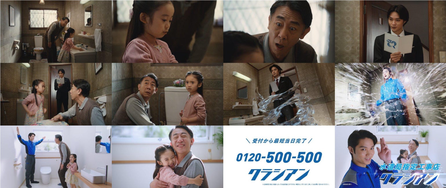 2022年10⽉に放送スタートした磯村勇⽃×⿇⽣久美⼦の「トイレつまり解決」のCMに続き、今回は磯村勇⽃×利重剛のタッグでクラシアンのリフォームサービスを紹介したTVCMを制作しました。