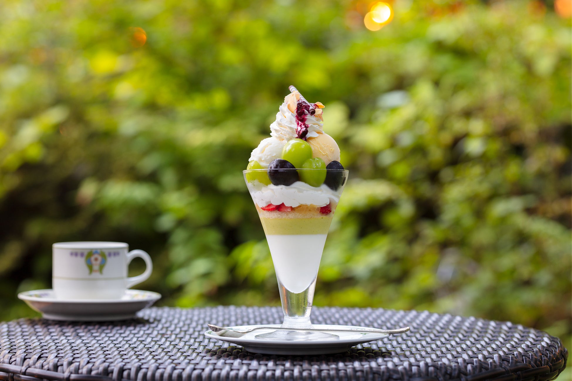 万平ホテルが未来に継承したいレガシーのひとつ、受け継がれてきた美味しさを「カフェテラス」が提供する「万平フルーツパフェ」でお楽しみ下さい。