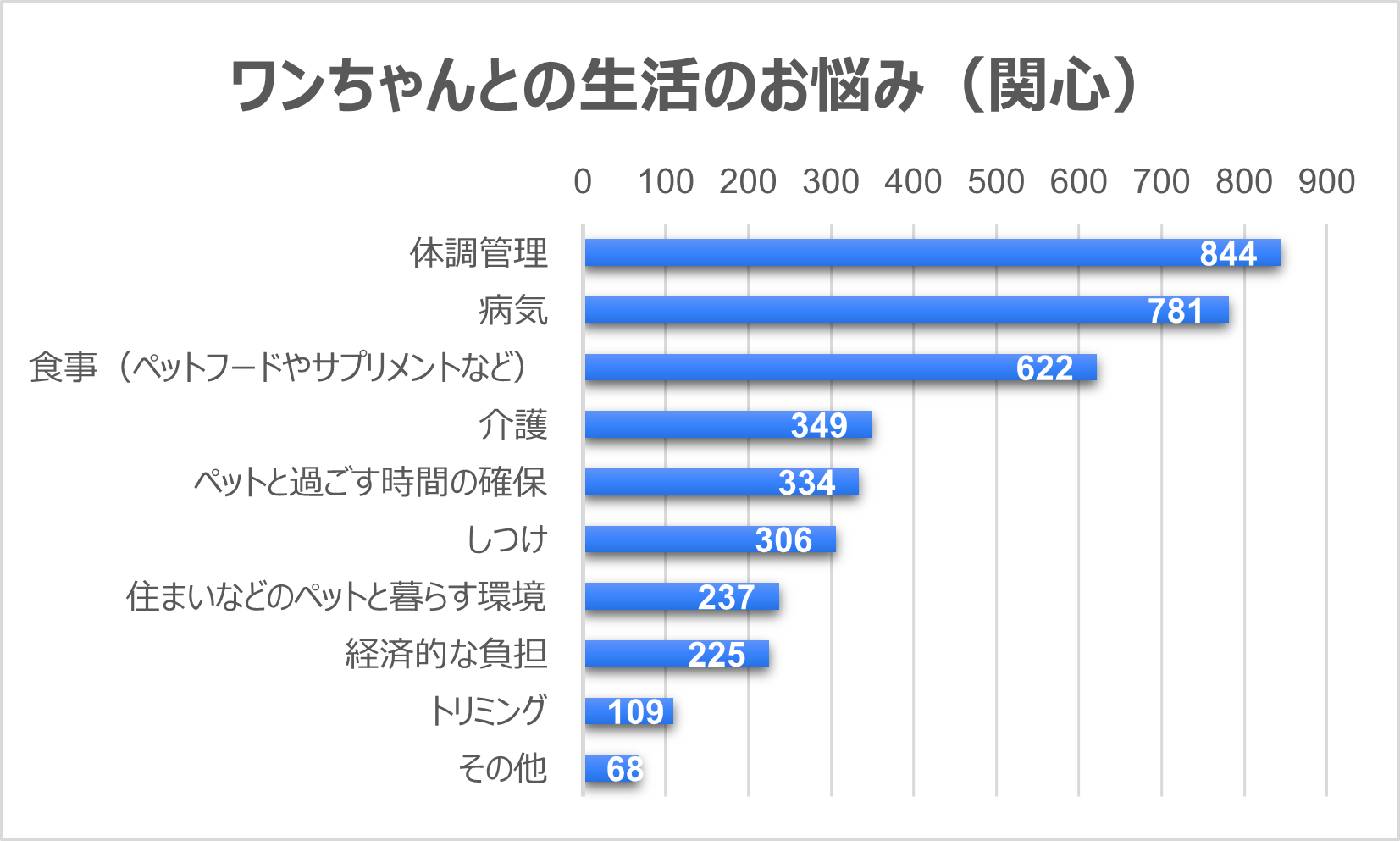 犬との生活で一番のお悩み(関心事):1位「体調管理」、2位「病気」、3位「食事」
