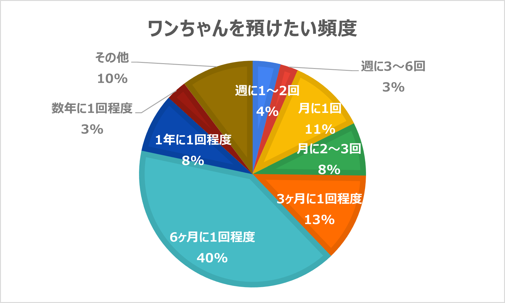 犬を預けたい頻度:6ヶ月に1回程度が40%で最多、一方で月に1回以上が約30%
