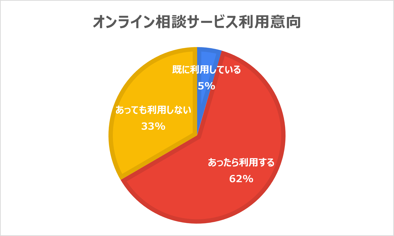 オンライン相談サービスの利用意向はあるが、サービスの存在を認識していないなどの理由から実際の利用は少ないことがうかがえる。