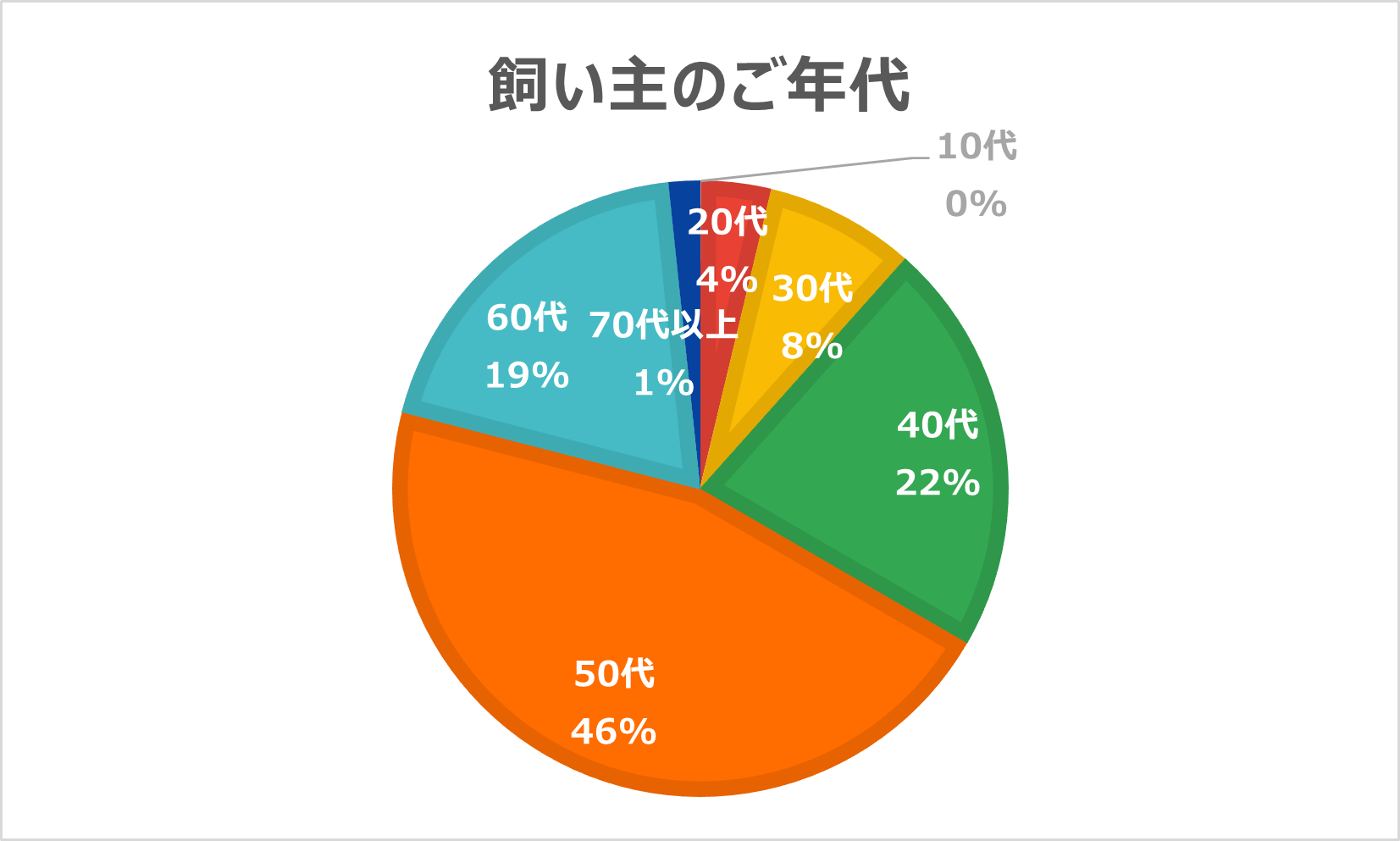 働き世代(20~50代)の飼い主が全体の80%をしめている。