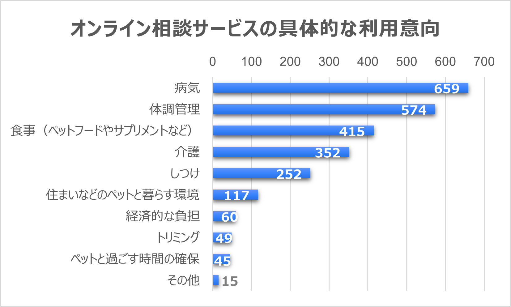 日々、犬の健康管理に気を配っているからこそ、相談サービスでも獣医師や専門家から健康面での意見をもらいたいことがうかがえる。