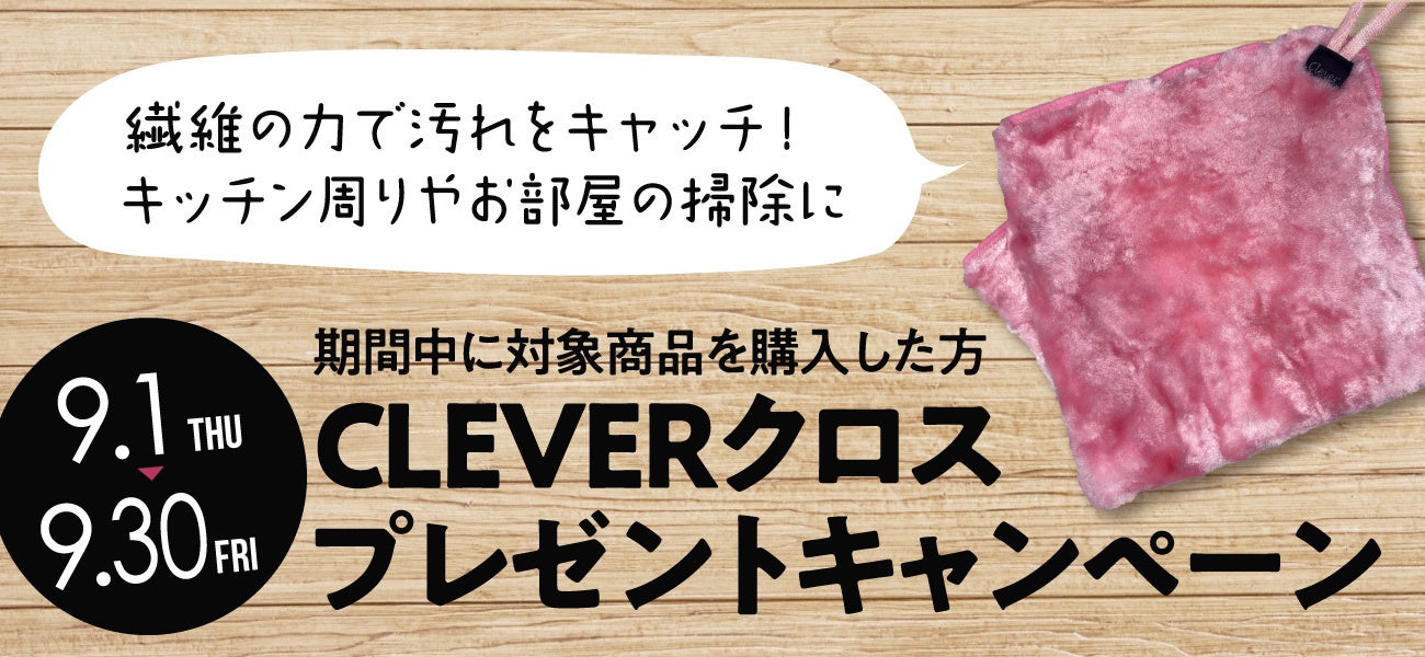 9月1日~9月30日の間に「防水シート」を購入いただいたみなさまに、吸水性抜群、油汚れなども繊維の力で絡めとるクロスシート「CLEVERクロス」をプレゼント!