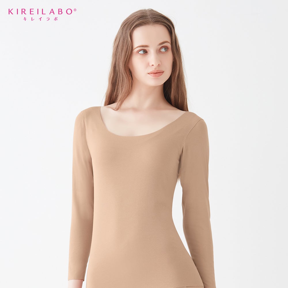 着膨れせず生地は薄いのに暖かい、吸湿発熱の冬インナー。起毛加工で肌側はやわらか。縫い目が一切なく、肌に低刺激。かさばりにくく、アウターにひびきにくいので、厚手のインナーが苦手な方におすすめ。保湿加工を生地に施し、肌にやさしい着心地と風合いを生み出しました。