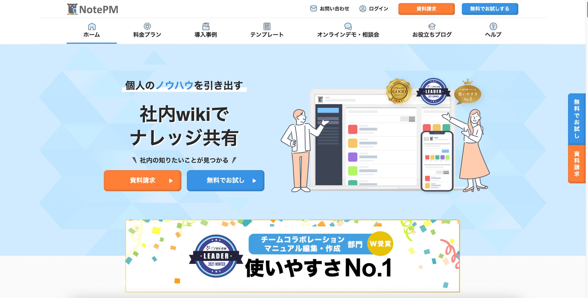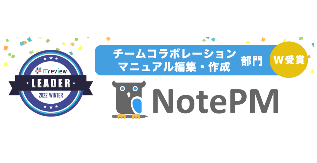 ナレッジ共有・社内wiki「NotePM」が「ITreview Grid Award 2022 Winter」で、チームコラボレーションとマニュアル作成部門において「Leader」を6期連続でW受賞!