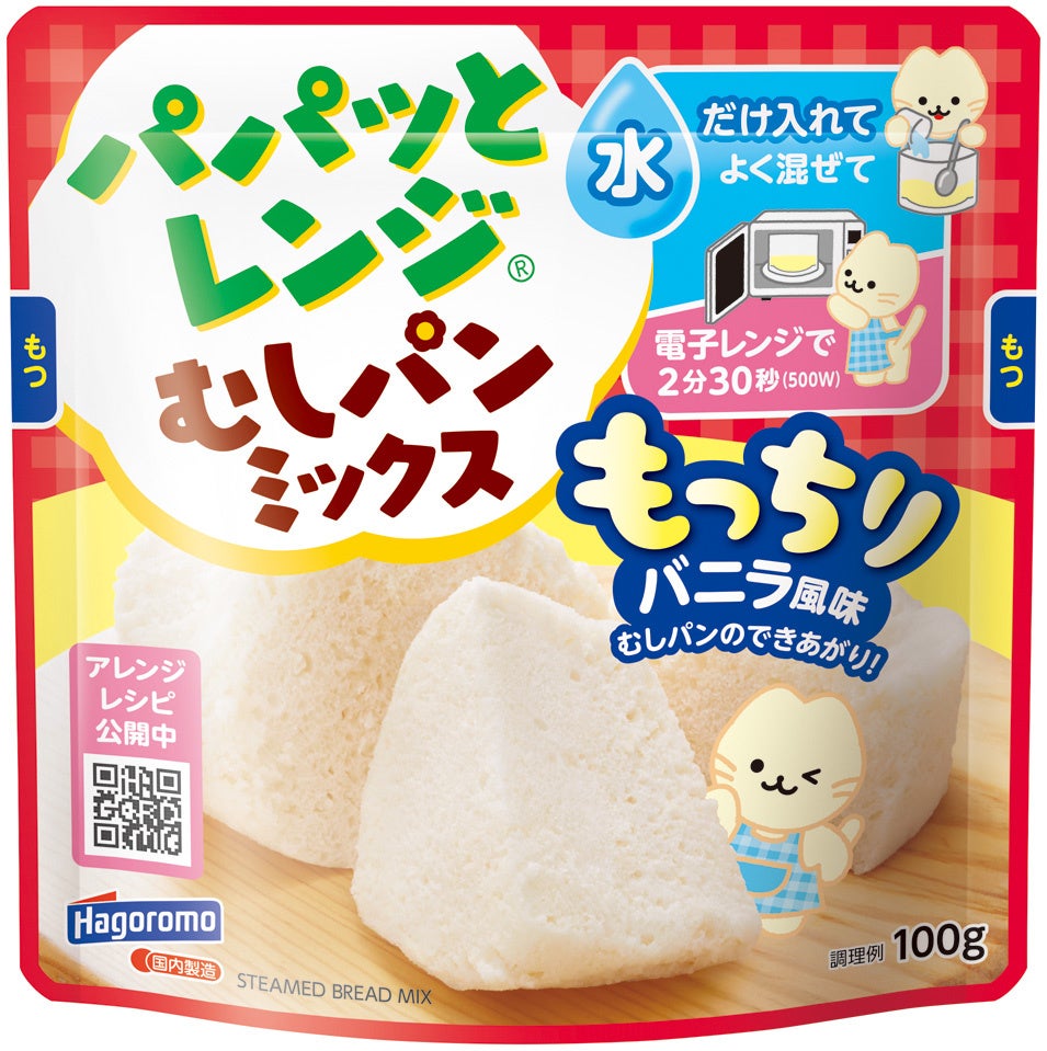 用意するのは水だけ!かんたん3ステップの『パパッとレンジむしパン』がリニューアル!バニラ風味はさらにおいしく、チーズ風味は新登場!