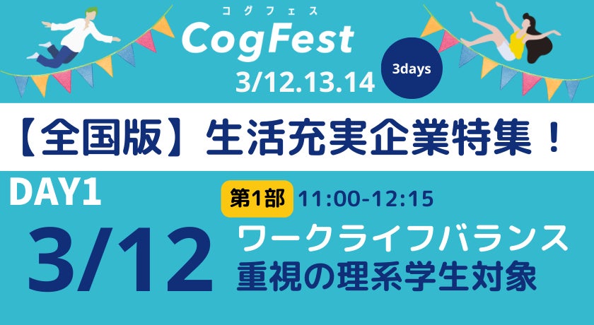 株式会社フォーラムエンジニアリング(東京都港区、代表取締役社長:佐藤 勉)が展開する理工系学生に特化した機械・電気系エンジニア就職支援サービス「コグナビ新卒」は、2024年3月12日(火)~14日(木)の3日間、オンライン就活フェアサイト「CogFest」(以下「コグフェス」)内で全国300社以上のメーカー企業を紹介するオンライン就職セミナー「第1回就職セミナーフェスティバル」を開催します。
