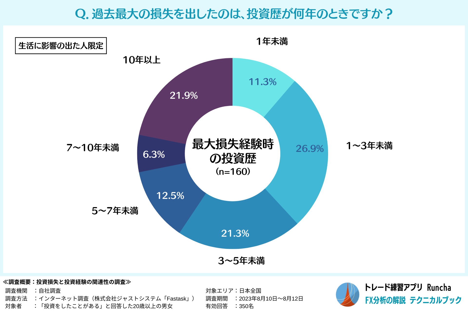 1.生活に影響のある損失を出した人は投資歴1~3年未満が26.9%と最多、投資歴1年未満は11.3%に留まる