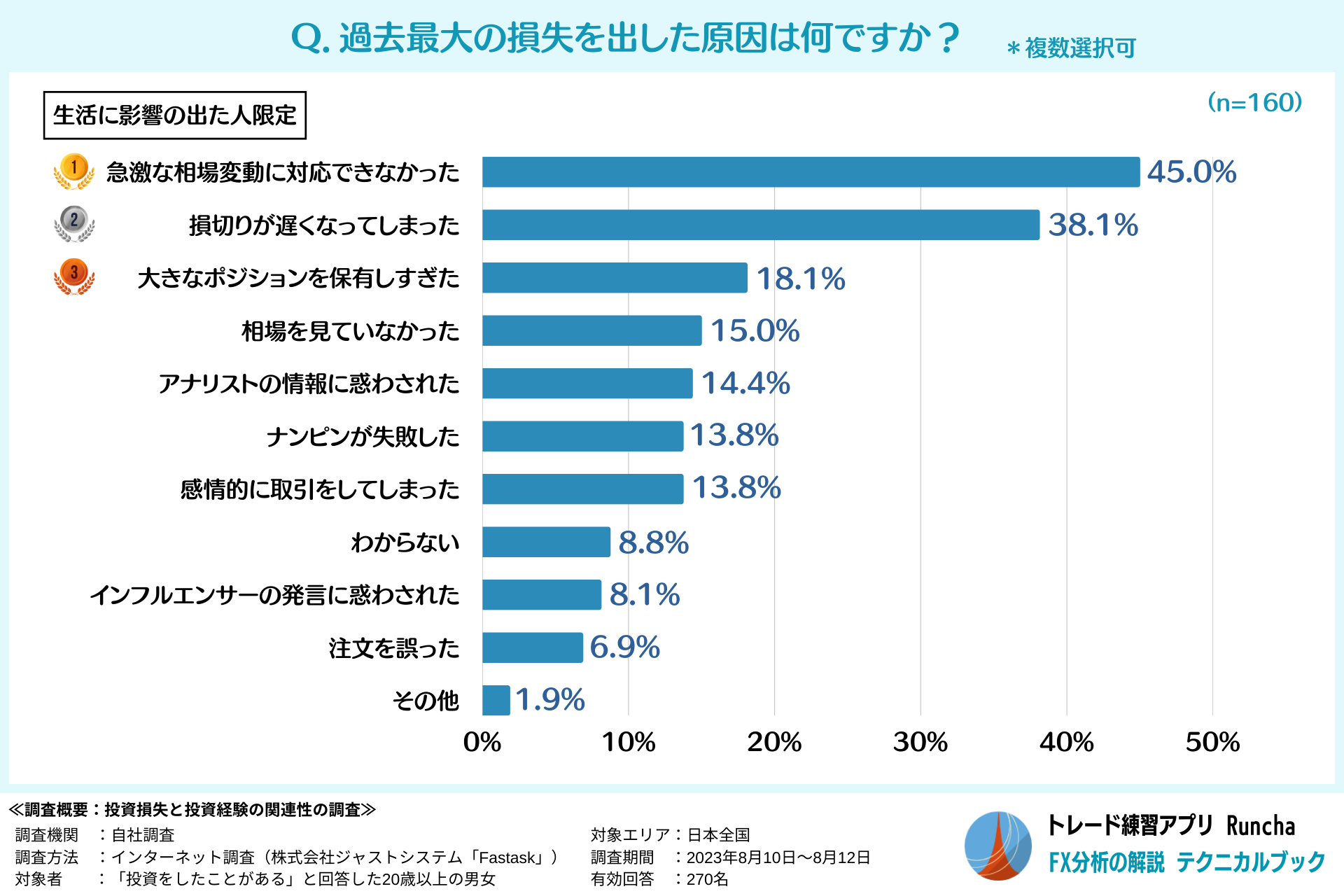 2.生活に影響のある大きな損失の原因は、「急激な相場変動」と「損切りの遅れ」