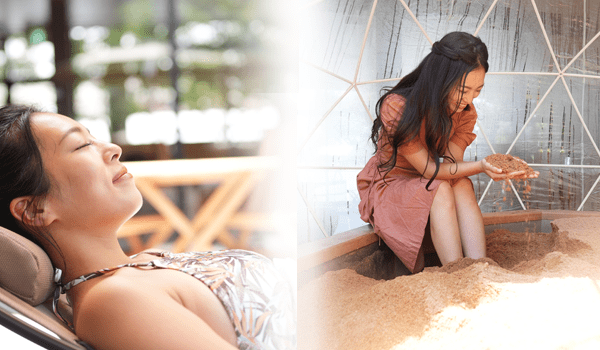 奈良県吉野産のヒノキを使用し、電気もガスも使わず微生物の発酵熱だけで60℃以上に温まったパウダーに足を入れ、ふわふわとした新感覚な足浴をご堪能ください。
