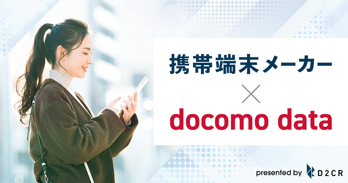 株式会社D2C R(本社:東京都港区、代表取締役社長:豊永 雅史、以下「D2C R」)は、株式会社D2C(本社:東京都港区、代表取締役社長:高田 了、以下「D2C」)が、株式会社NTTドコモ(以下「ドコモ」)から提供を受けている第三者提供に同意されたユーザーデータ(広告識別子・属性情報・位置情報・行動履歴など)を活用し、国内携帯端末メーカー様向けにドコモデータを用いた広告メニューの提供を開始いたします。こちらは、第三者提供に同意されたユーザーデータを活用し、各種主要広告プラットフォームでの広告配信を可能とするメニューです。これにより、Androidユーザーの潜在層や顕在層に向け、購入を促すことを目的とした広告配信が可能となります。