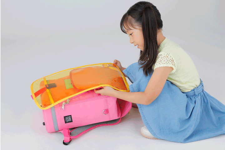・肩ベルトに3Dパターンを採用し、小学生の身体によりフィットする設計。