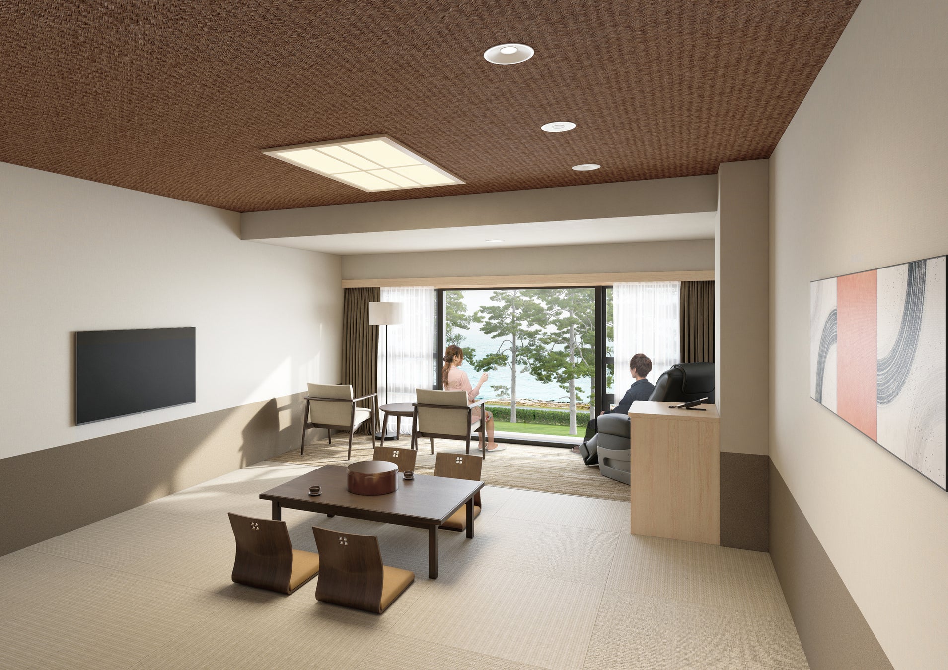 6月までリニューアル工事のため休館し、7月1日からより一層寛ぎの時間を体感いただける客室へグレードアップして営業を開始します。